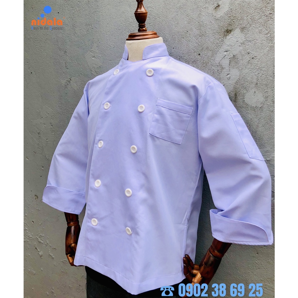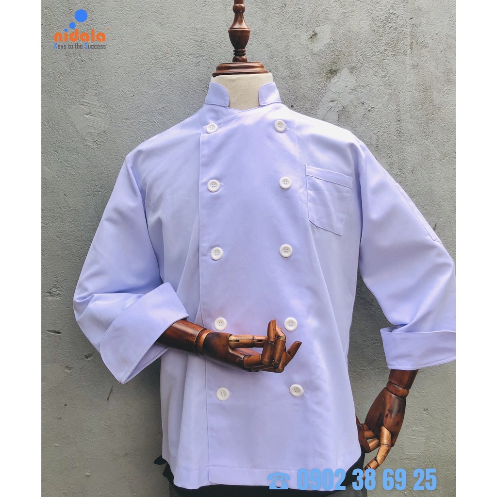 Áo bếp nam nữ dài tay Nidala vải Kaki dày dặn Việt Nam
