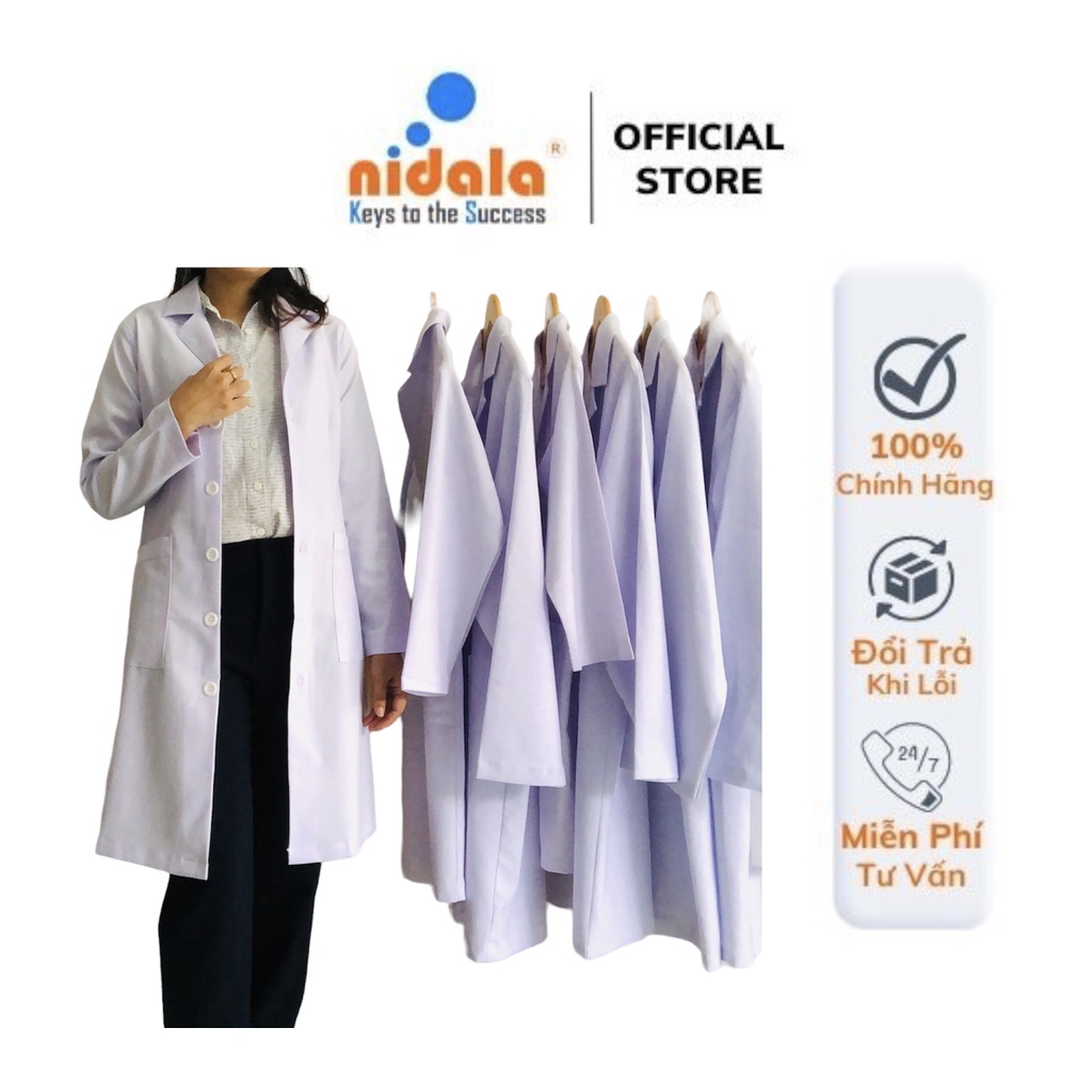 Áo blouse bác sĩ Nam Nữ dáng dài Bigsize Nidala đường may đẹp, sắc xảo
