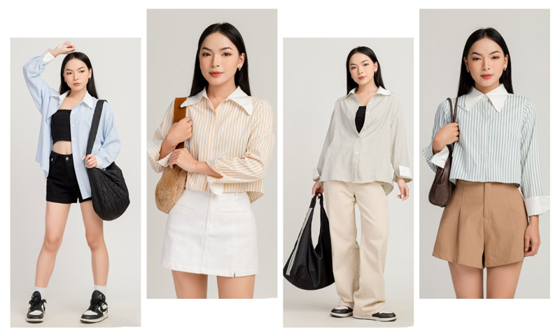 Mốt giấu quần: Mix & match áo sơ mi cùng quần short ngắn là cách tuyệt vời để hướng sự chú ý vào đôi chân, tạo cảm giác thanh thoát.