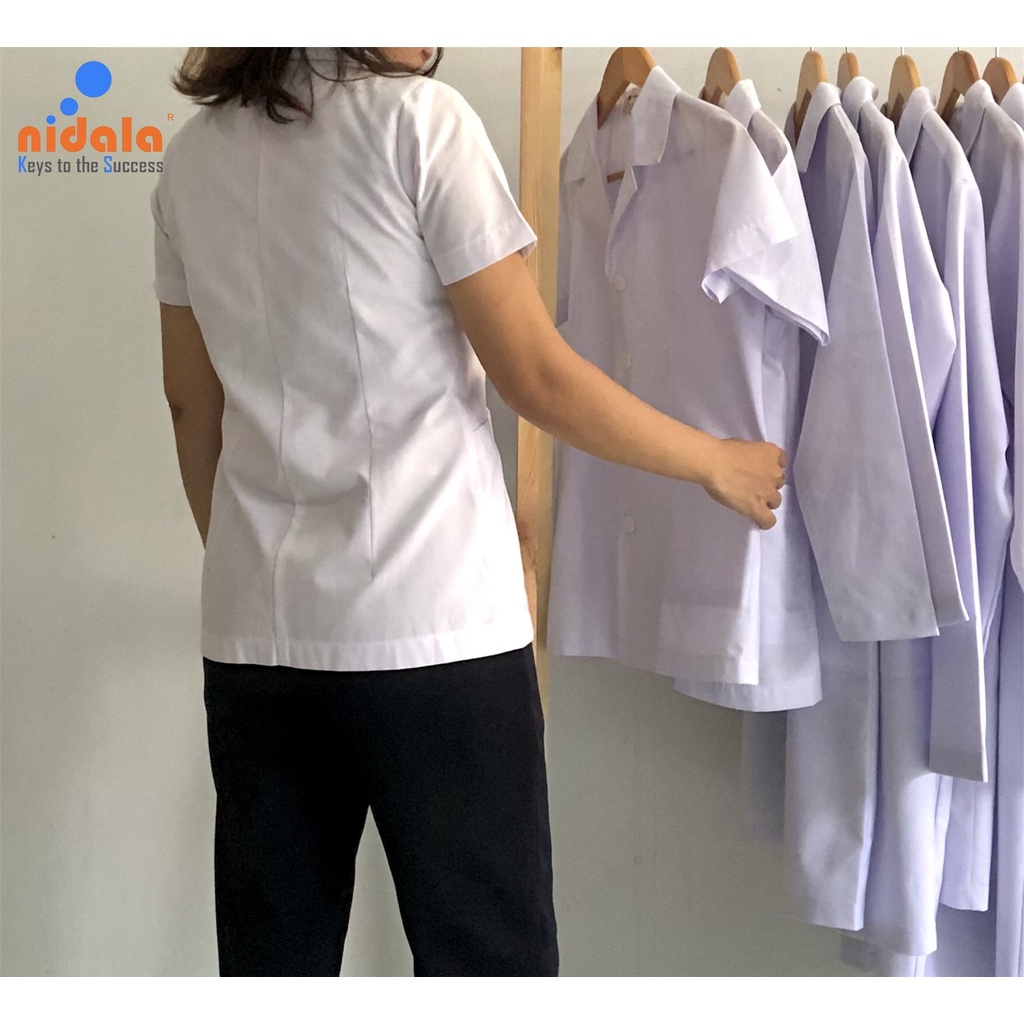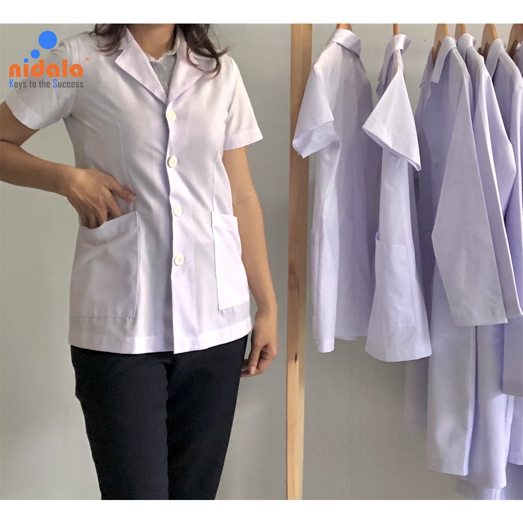 Áo blouse Nữ tay ngắn, dáng ngắn dược sĩ, y tá, điều dưỡng Nidala đường may đẹp, sắc xảo